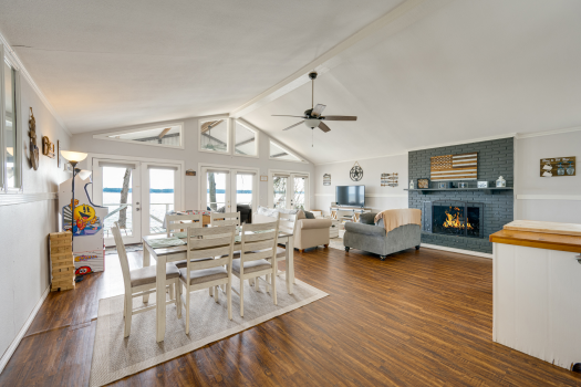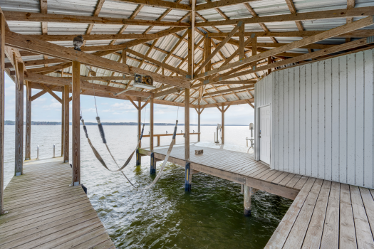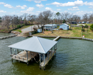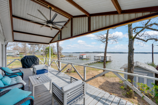 Experience the charm of lakeside living at this delightful lake house on Lake Palestine in beautiful East Texas, just minutes from Tyler. Perfectly positioned to capture expansive open water views looking east, this updated bungalow offers breathtaking sunrises and enchanting moonrises right from your living room! Inside, the open living, dining, and kitchen area is designed for gathering, featuring a spacious island and a wall of windows that frame mesmerizing lake views. A cozy wood-burning fireplace anchors the living space, creating the perfect ambiance for crisp fall evenings and cool winter nights. Sliding glass doors lead to a covered elevated deck where you can relax in comfort--cooler in the summer months with the afternoon sun behind you--while soaking in the panoramic waterfront views. Thoughtfully designed for comfort and privacy, the home features two bedrooms and two baths, each accessed by separate hallways. Outside, an oversized two-car carport includes generous storage space and a small shop area, ideal for tools and lake toys. This property is fenced with a sliding gate at entrance, providing an additional level of safety for children and pets. The large backyard gently slopes to level as you make your way to the shoreline, where a custom-built one-stall boathouse awaits. Complete with an electric lift for boat and two jet ski lifts, it makes getting on the water effortless. A covered deck area at the boathouse provides the perfect lakeside retreat, along with a convenient refreshment and storage area featuring a roll-up window for easy entertaining. Approximately 120+ feet of shoreline is protected by a bulkhead, helping guard against erosion and preserving your investment for years to come. Whether you're seeking a weekend getaway or a full-time waterfront haven, this charming Lake Palestine retreat delivers comfort, views, and easy lake living at its finest.